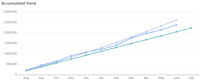 以过往版本的历史效率数据为参考,建立不同类型版本的产量随时间变化的基准线,辅助项目规划、进度跟进与回顾。